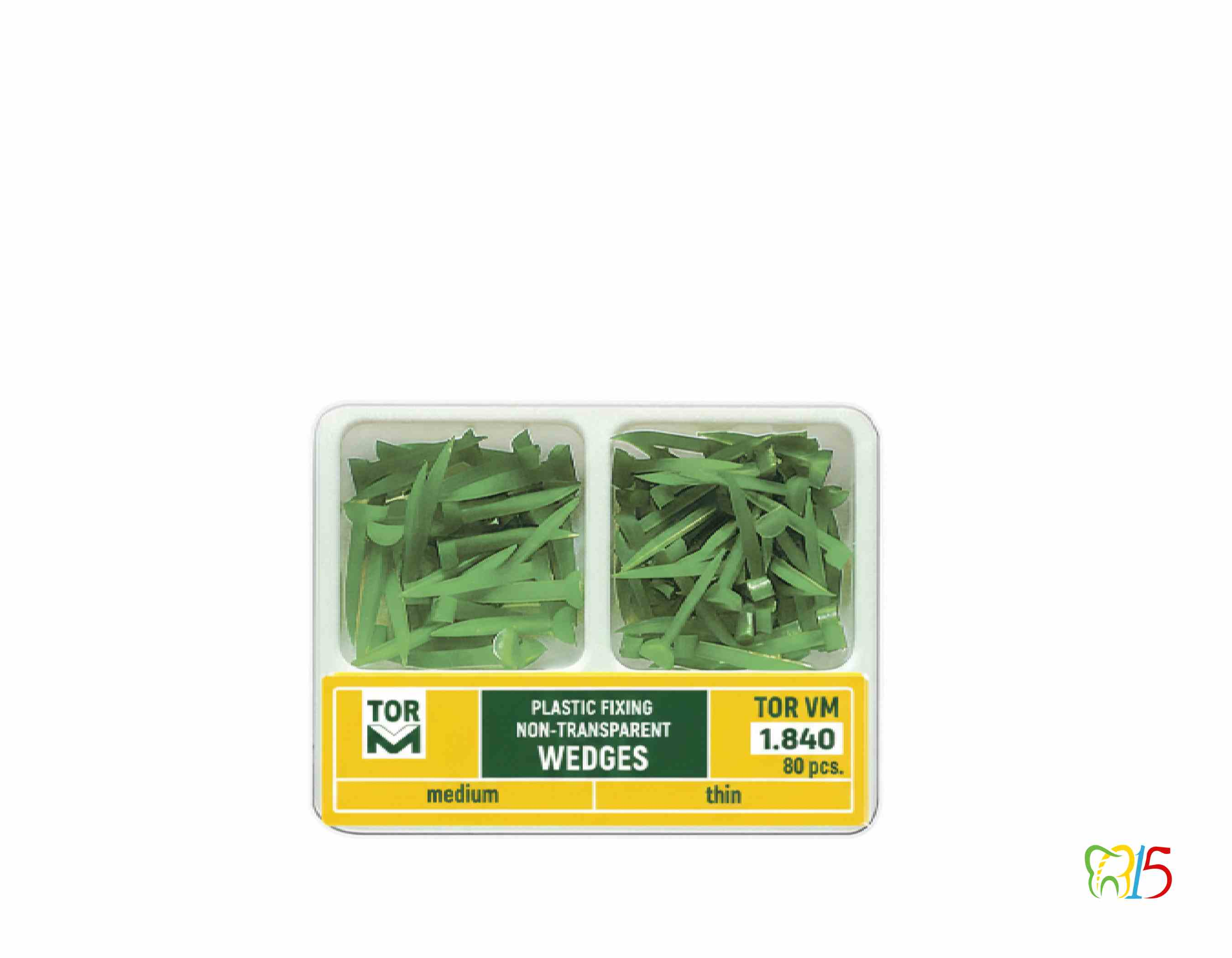 وجهای پلاستیکی TorVM، یک جایگزین مقاوم در برابر جذب رطوبت برای وجهای چوبی هستند و برای استفاده در ترمیمهای کلاس II کامپوزیت و آمالگام به کار میروند. رنگ سبز در سیستم رنگبندی وجهای دندانپزشکی، معمولاً نشاندهنده یک سایز متوسط است که برای استفاده در دندانهای پرمولار یا فضاهای بین دندانی استاندارد مناسب است. وظیفه اصلی این وجها، فشردن نوار ماتریکس به سطح دندان در ناحیه لثهای (Cervical Margin) برای آببندی کامل (Sealing) و جلوگیری از نشت مواد ترمیمی است. همچنین با اعمال نیروی اندک، به جداسازی موقت دندانها کمک کرده و ایجاد یک نقطه تماس محکم (Tight Contact Point) را تضمین میکنند.